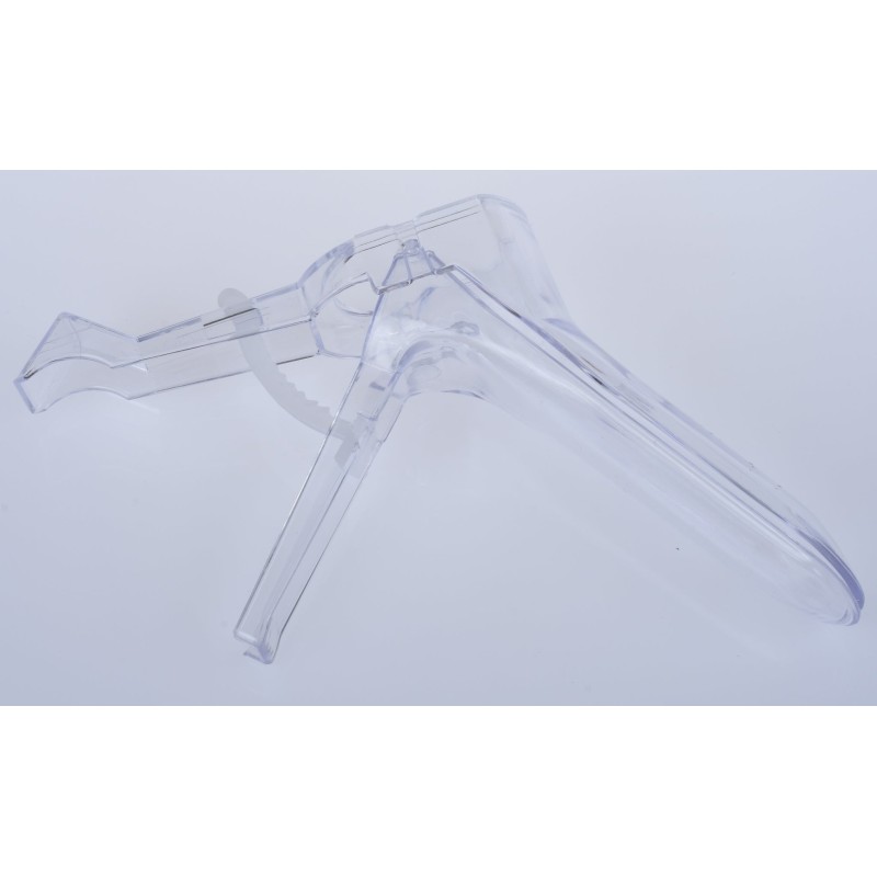 Espejo Vaginal Chico, Estéril, Desechable. Fabricado en poliestireno cristal HF555, para usarse una sola vez. Sistema de sujeción a base de cremallera. Información Técnica: Peso:45g +5%; Valva Superior: 95X27 mm +5%; Valva Inferior: 100X27 mm +5%; Diámetro Orificio Central: 45mm, Apertura mínima 1a Posición: 30 mm +5%; Apertura mínima 2a Posición: 65 mm +5%; Apertura Máxima 1a Posición 40mm +5%; Apertura Máxima 2a Posición: 80 mm +5%; Cremallera 50 mm +5%; Polímero Espejo Vaginal: Poliestireno Cristal HF555 100% Virgen Polímero Cremallera: Nylon 6 Natural